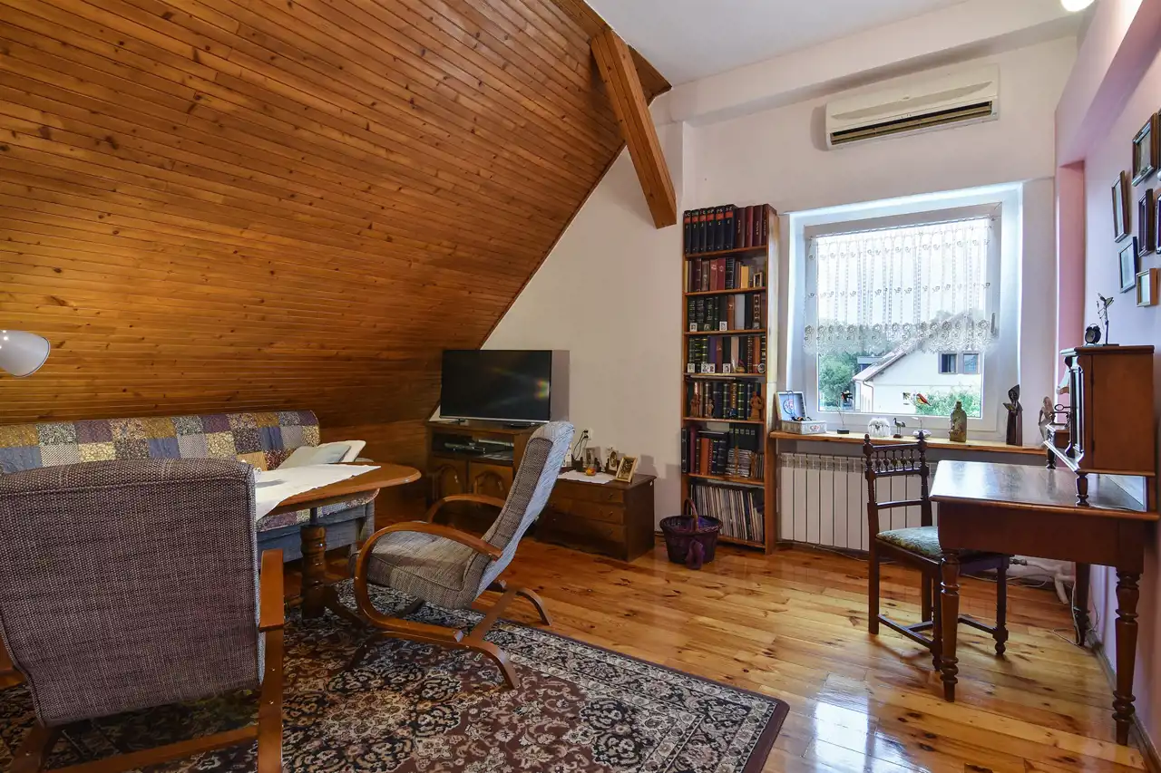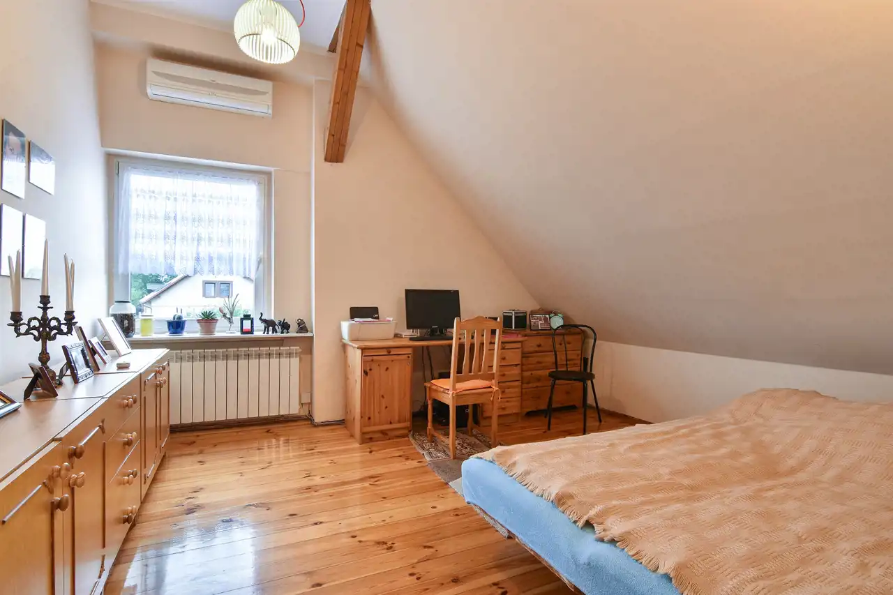 Lokal jest słoneczny i bardzo ustawny, ma zdecydowanie pozytywną energię. Przynależy do niego wydzielony ogródek, wygodny blaszany garaż oraz część strychu.