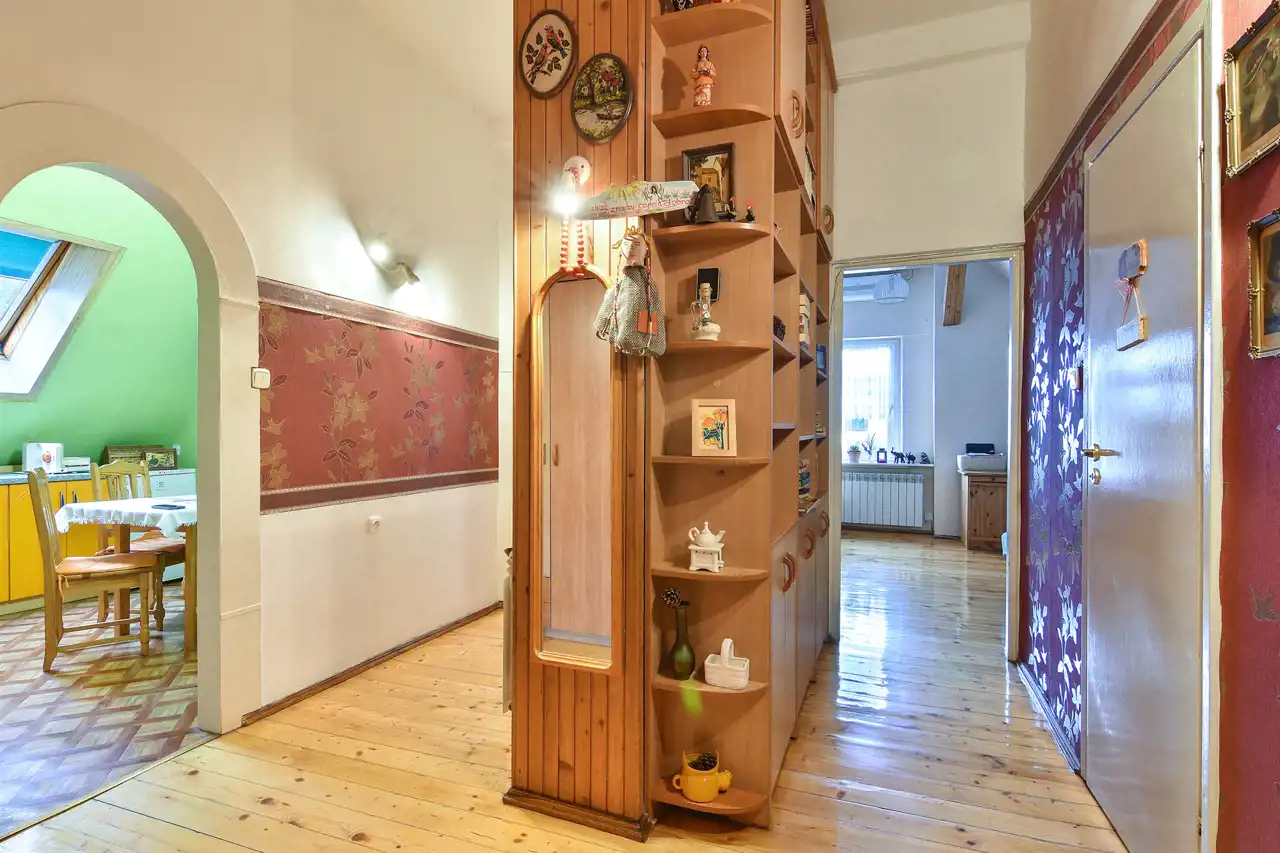 Składa się ono z dwóch pokoi, dużej kuchni, obszernego korytarza, łazienki i skrytki.