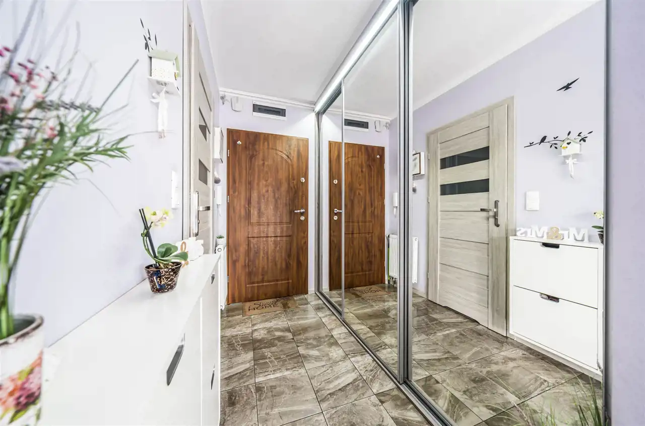 - Korytarz: o pow. 4,70 m2, na podłodze płytki oraz duża szafa 3 skrzydłowa w zabudowie z lustrami w systemie przesuwnym Komandor. Domofon.