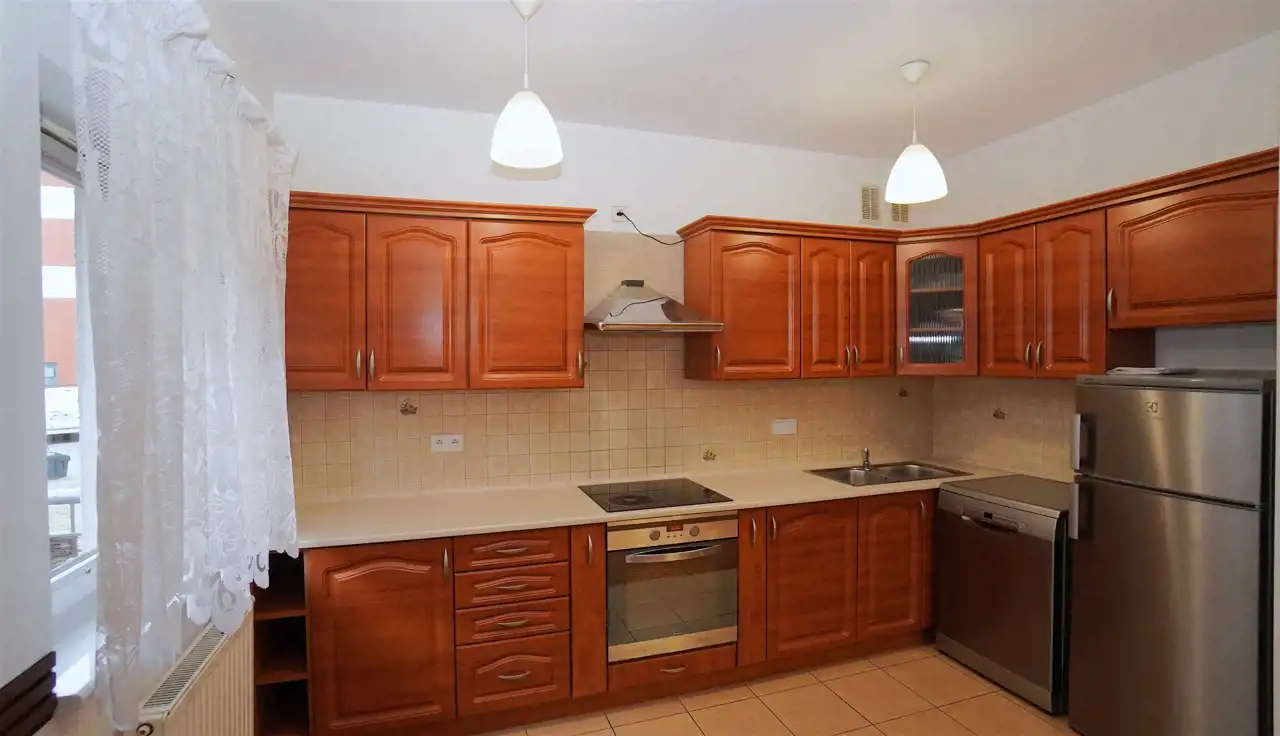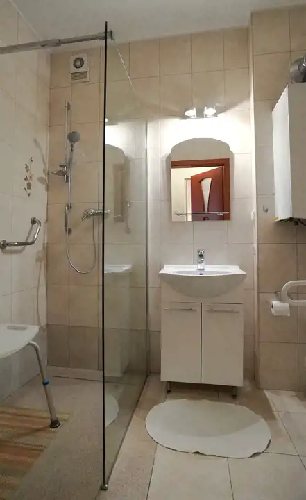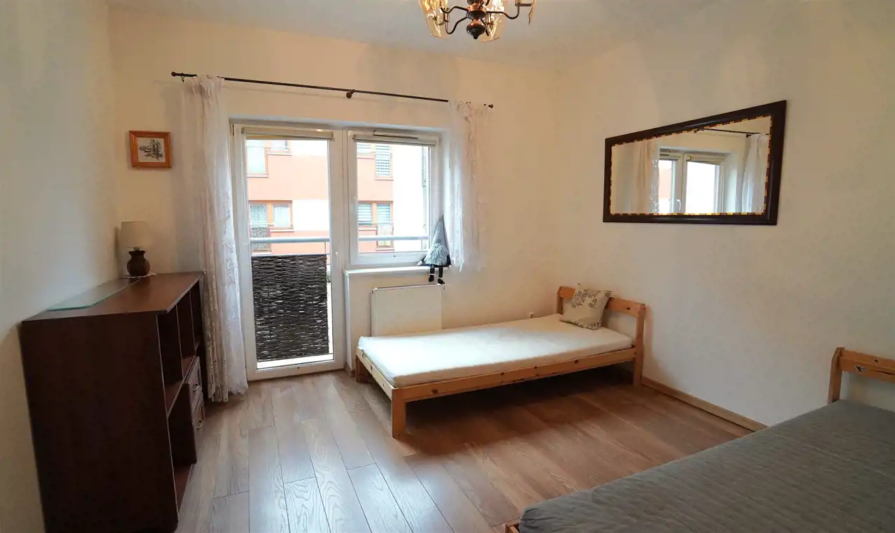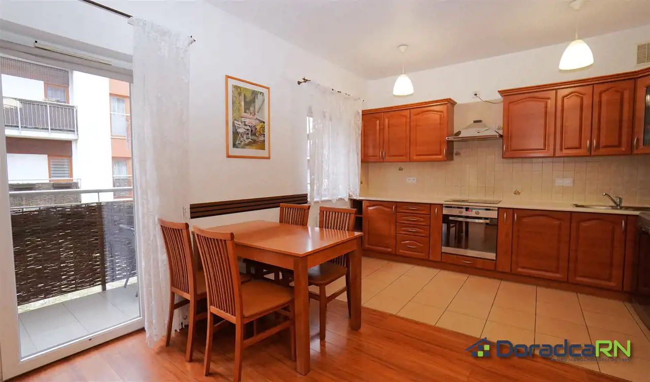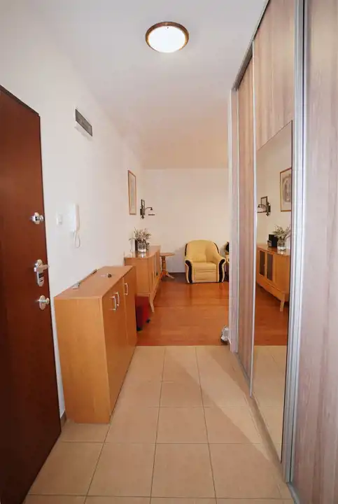 Kuchnia umeblowana wraz ze sprzętem AGD na wyposażeniu. Łazienka z prysznicem i pralką. W korytarzu duże i pojemne szafy wnękowe.
