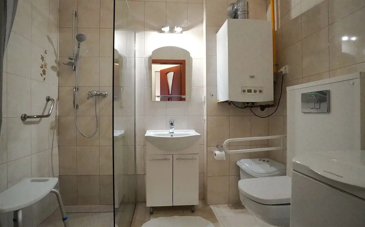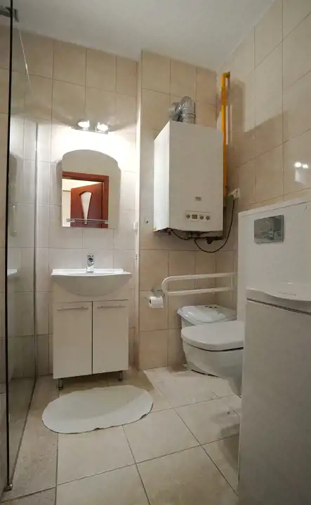 Ekonomiczne ogrzewanie gazowe (w łazience piec). Niskie koszty eksploatacyjne.