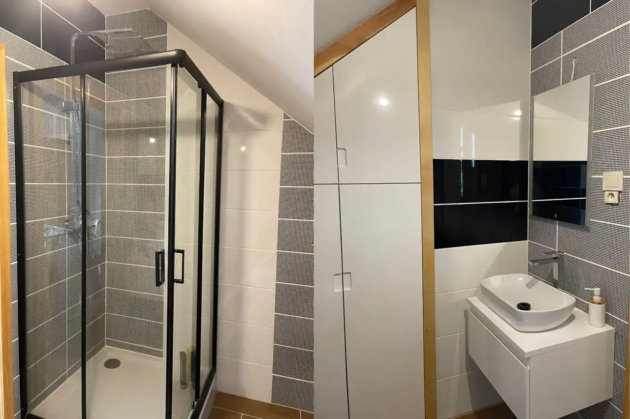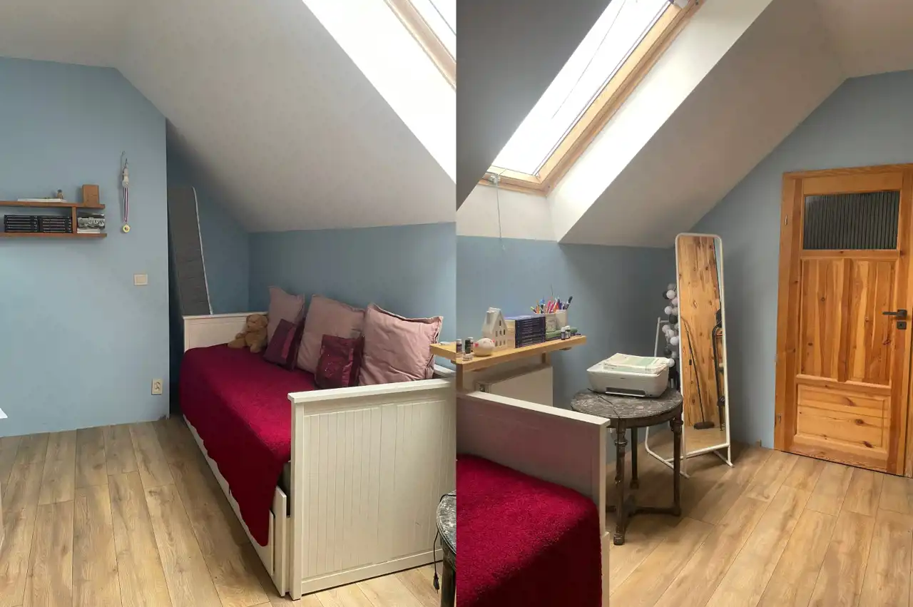 W skład pietra pierwszego wchodzą trzy sypialnie, mogące gościć w każdym z pokoi od 2 do 4 gości oraz trzy odrębne łazienki. Nieruchomość jest gotowa do zamieszkania lub przyjmowania gości.