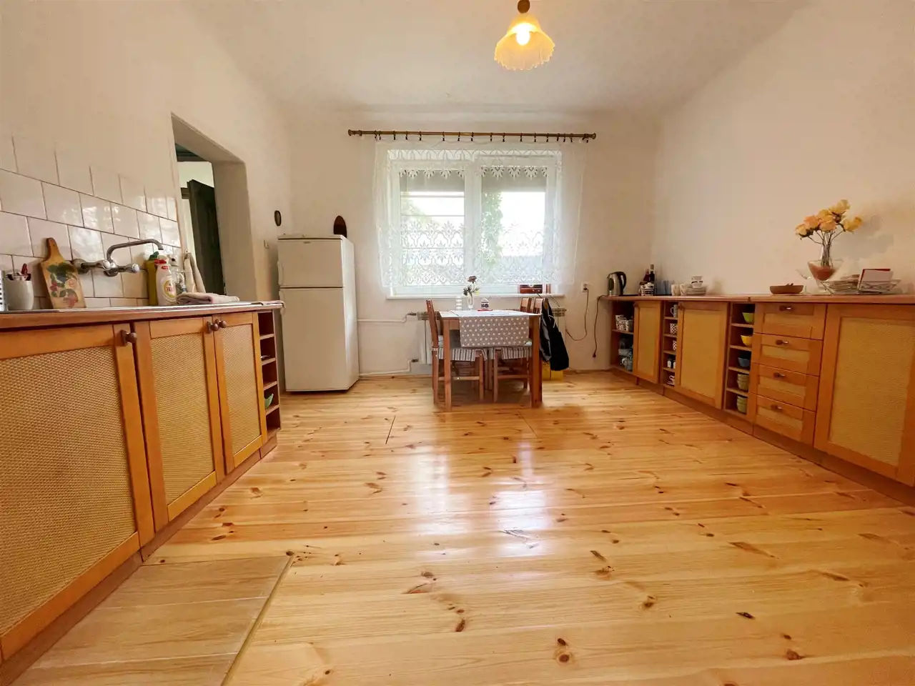 1) Murowany, parterowy budynek mieszkalny o powierzchni użytkowej ok. 80 metrów kwadratowych kryty blachą.