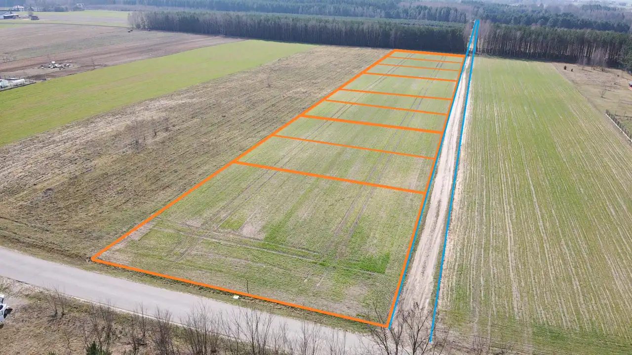 Oferujemy kompleks 9 działek o powierzchni ok. 1100 m² każda, w atrakcyjnej cenie 70 zł/m².