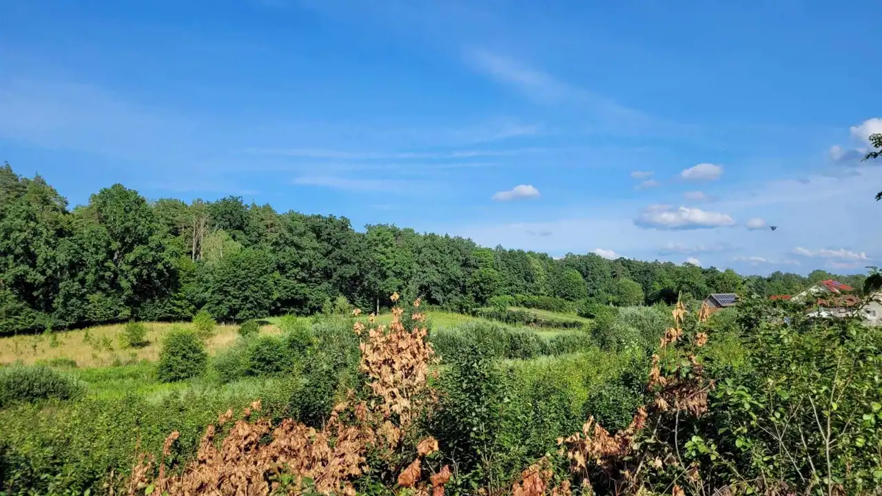 Działka jest o łącznej powierzchni 9 000m2 (w tym pod zabudowę o powierzchni 1 775 m2 oraz przynależną do niej działkę rolną pod lasem o powierzchni 7 225 m2).