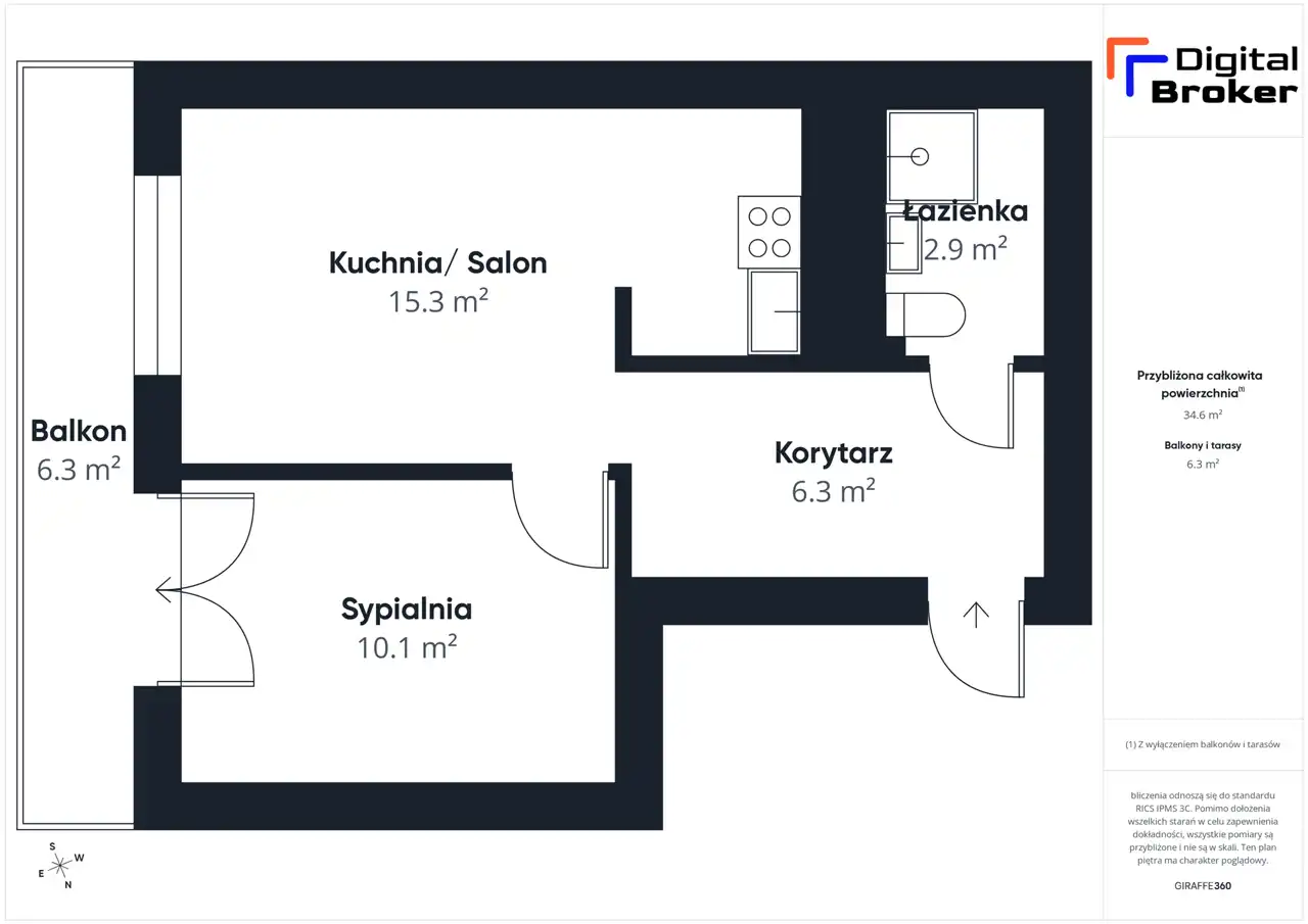 - Charakterystyka mieszkania 34 m2, 2 pokoje