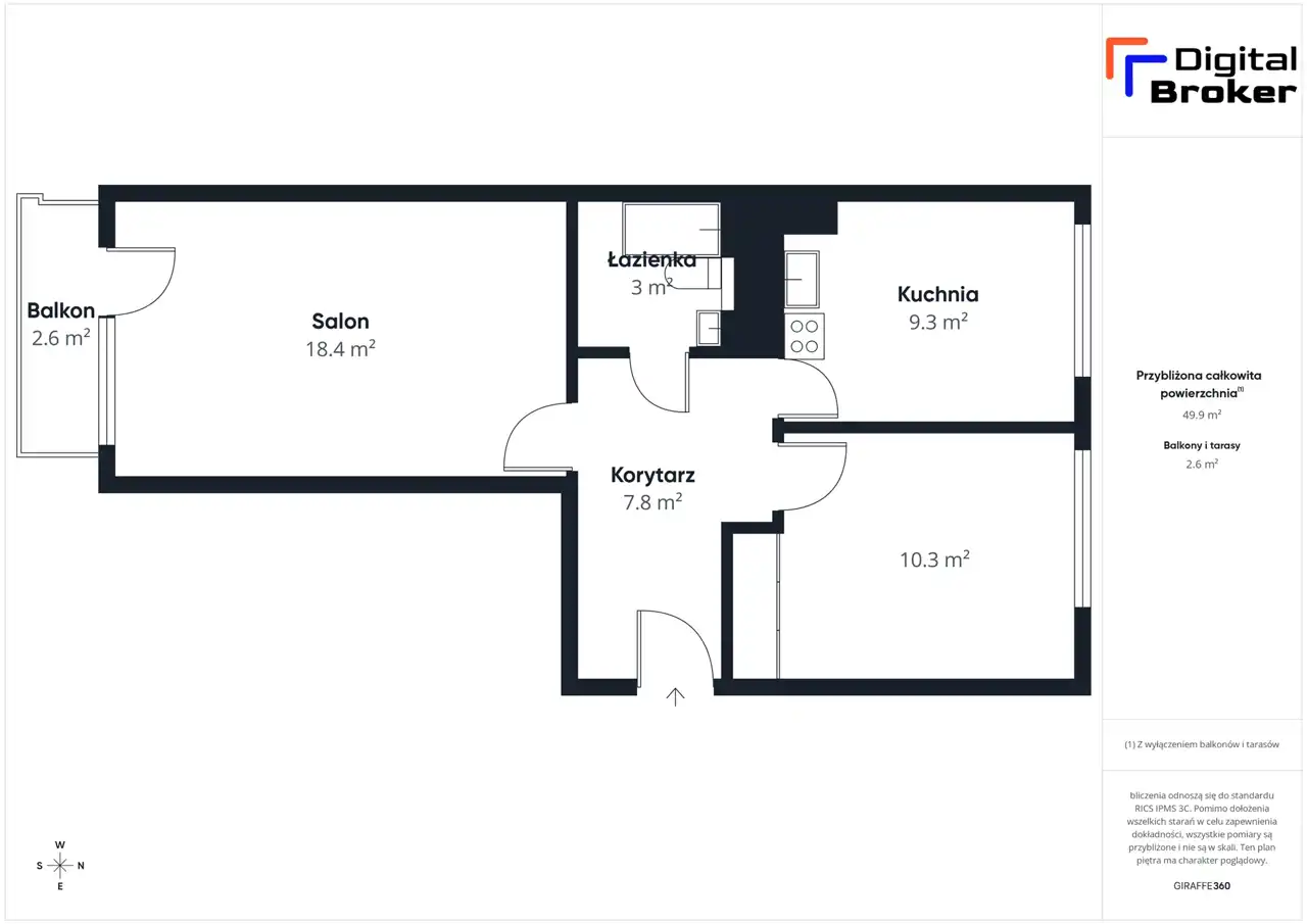 - Charakterystyka mieszkania 51.16 m2, 2 pokoje