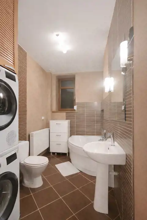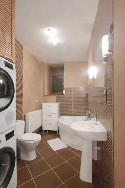 Łazienka (6 m²) – w pełni wyposażona; nowoczesna i funkcjonalna (pralka i suszarka nie są częścią wyposażenia)