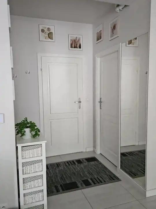 Przedpokój (3,7 m²) – z dużym lustrem i wygodnym wejściem do mieszkania