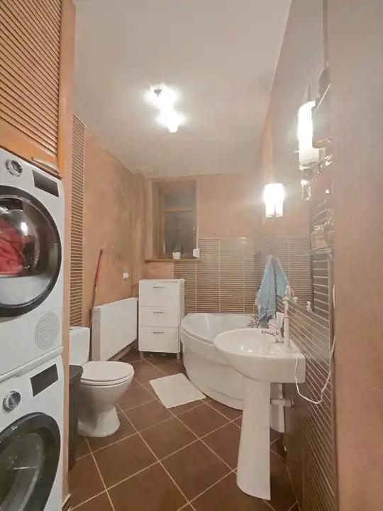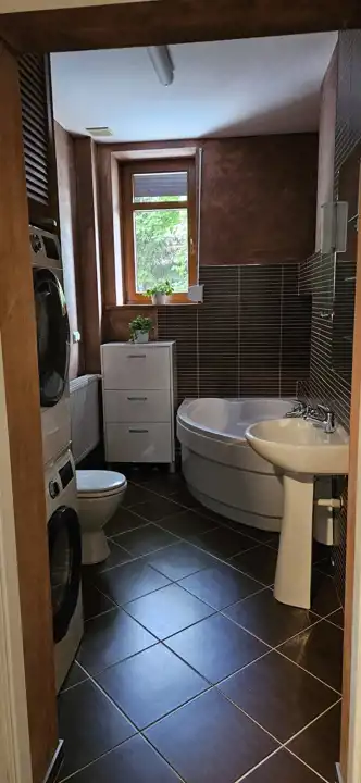 Łazienka (6 m²) – w pełni wyposażona; nowoczesna i funkcjonalna (pralka i suszarka nie są częścią wyposażenia)