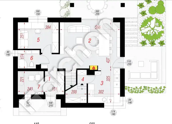 Układ pokoi: 4 sypialnie ( w tym jedna na parterze) + przestronny salon