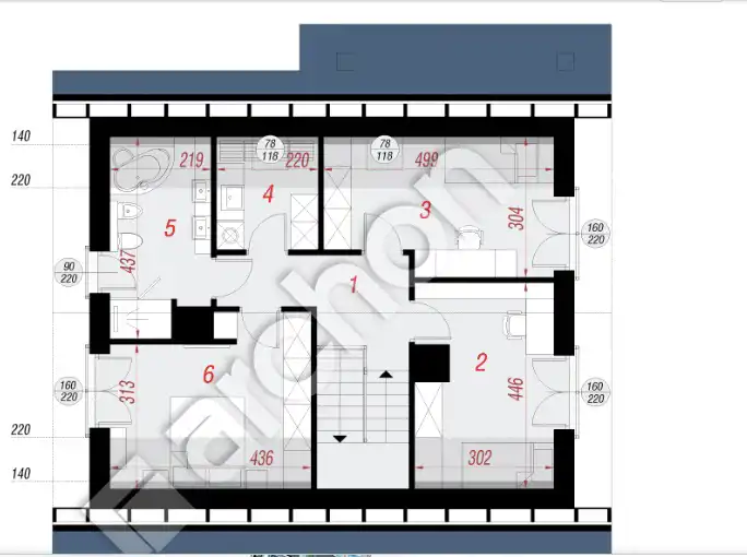 - duża łazienka z zaprojektowanymi: wanną, prysznicem, dwiema umywalkami, toaletą i bidetem, doświetlona oknem