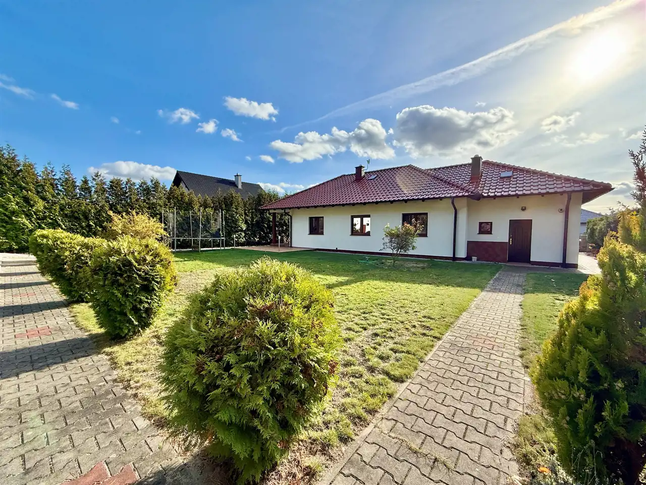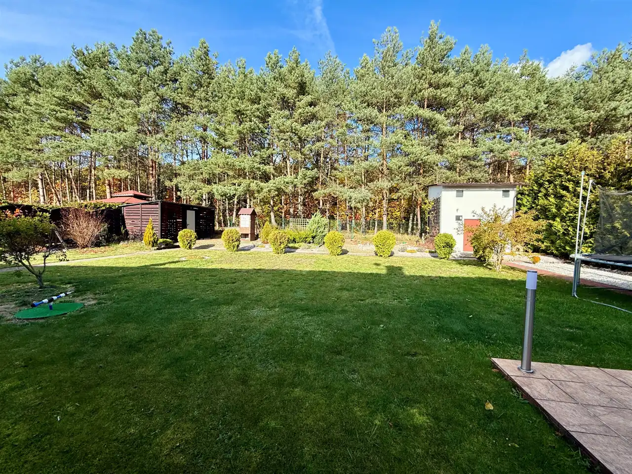 Na sprzedaż wyjątkowy dom parterowy w Koźlicach, powierzchnia całkowita 125 m², posadowiony na pięknie usytuowanej 10 arowej działce z bezpośrednim wejściem do sosnowego lasu.