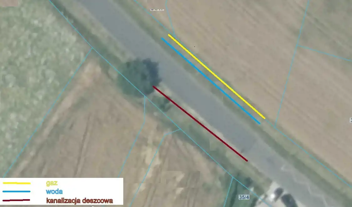 Media tj. woda, kanalizacja deszczowa, gaz - przy drodze dojazdowej, prąd - po sąsiedzku.
