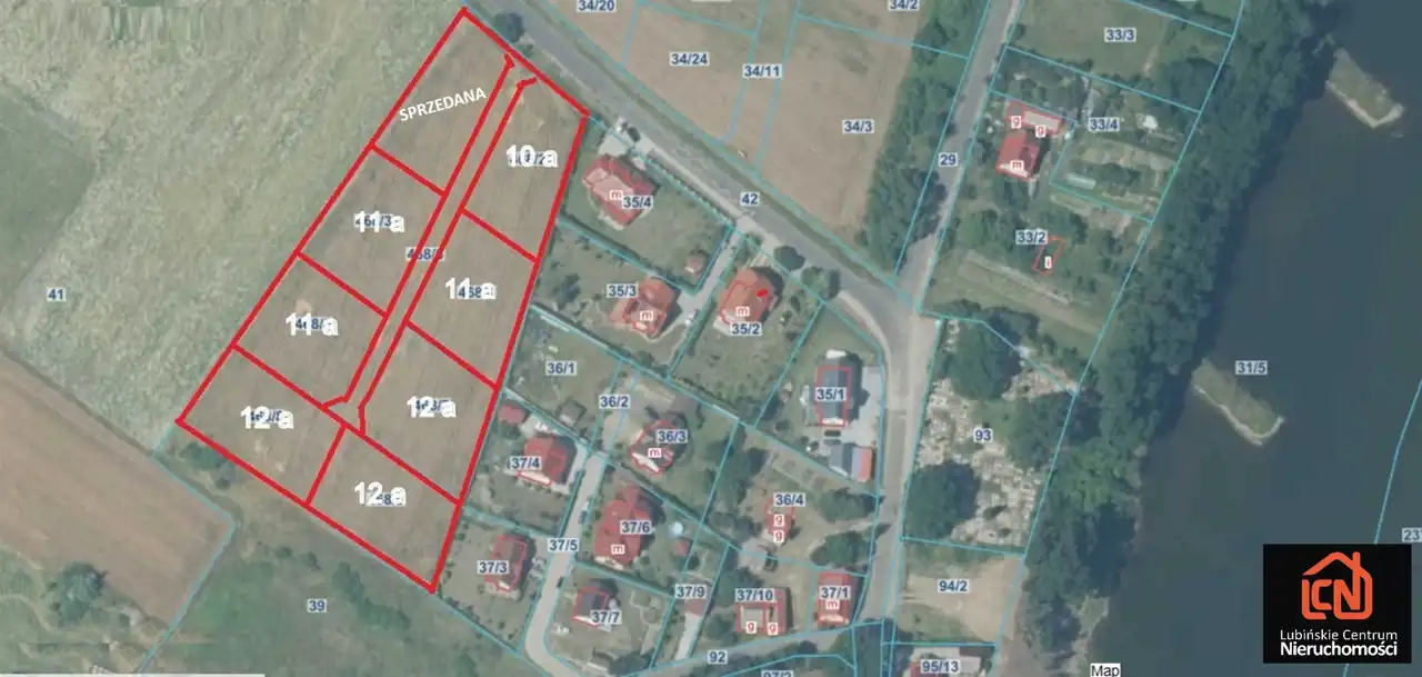 Grunty o regularnym kształcie. Dojazd bezpośrednio drogą asfaltową. Teren nie zalewowy.