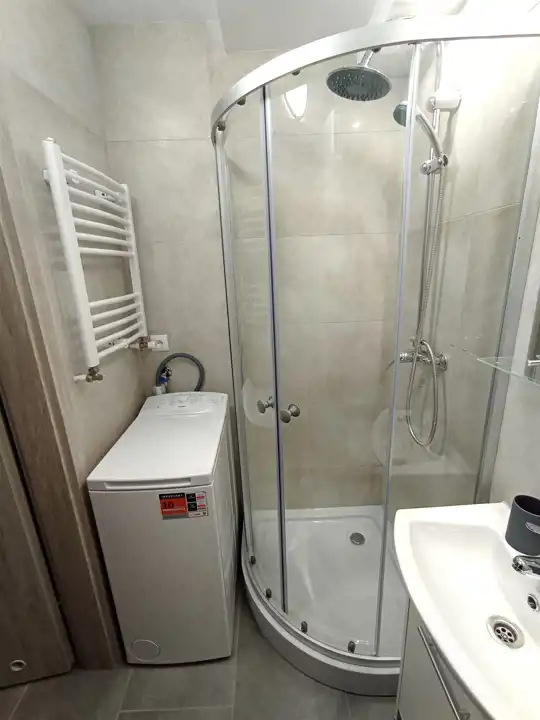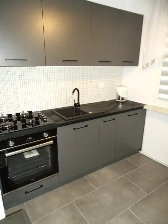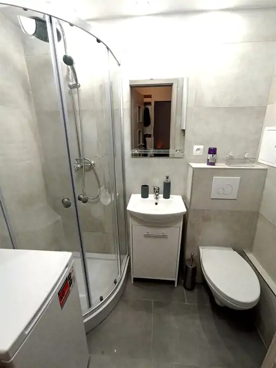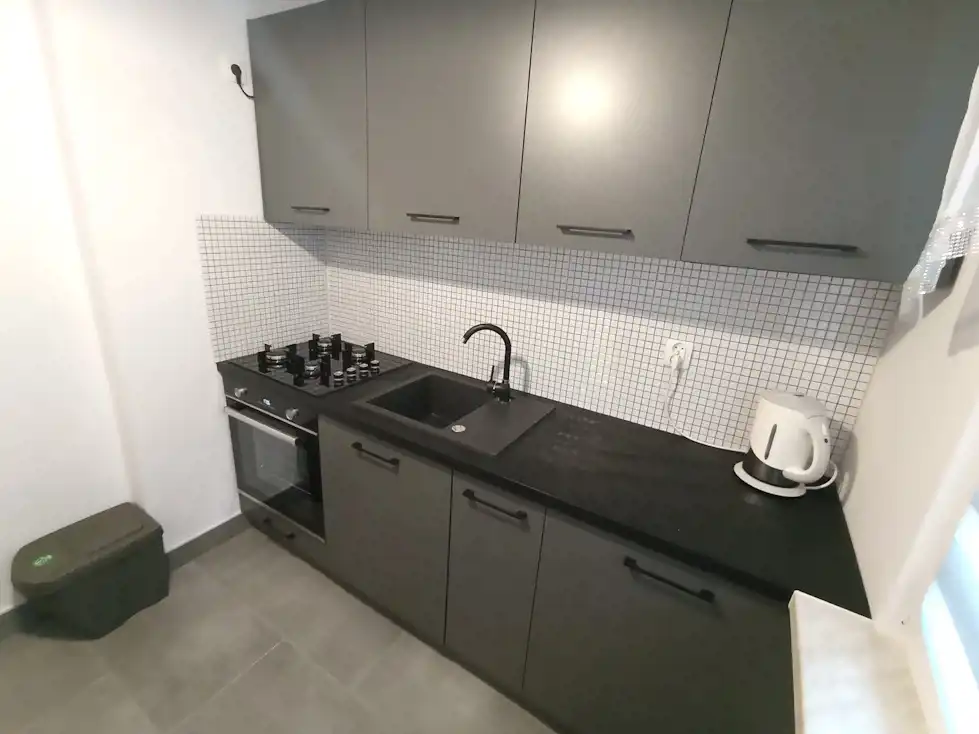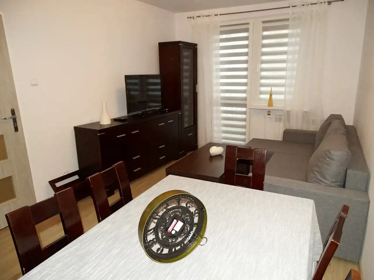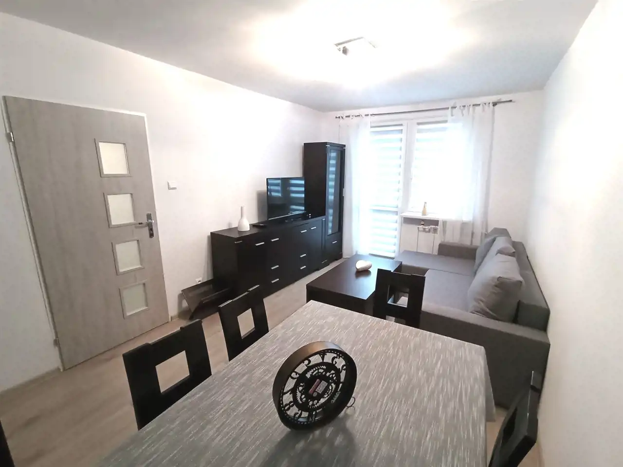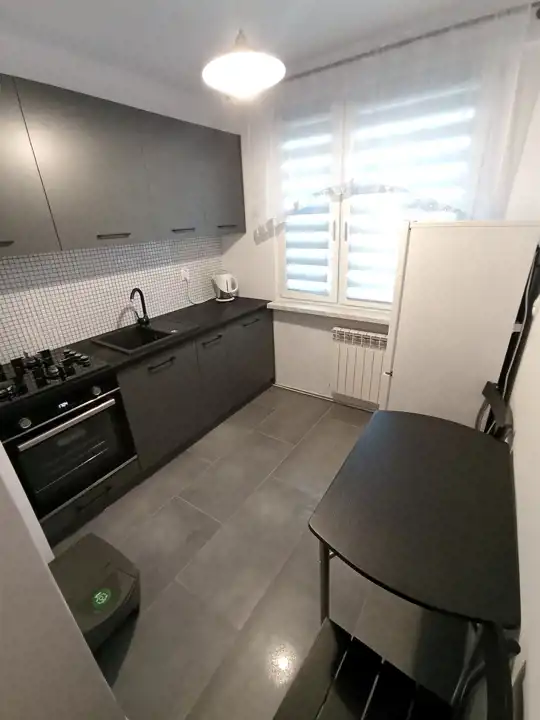 Mieszkanie jest kompletnie wyposażone w sprzęt RTV i AGD (pralka, TV, płyta gazowa, piekarnik i lodówka).