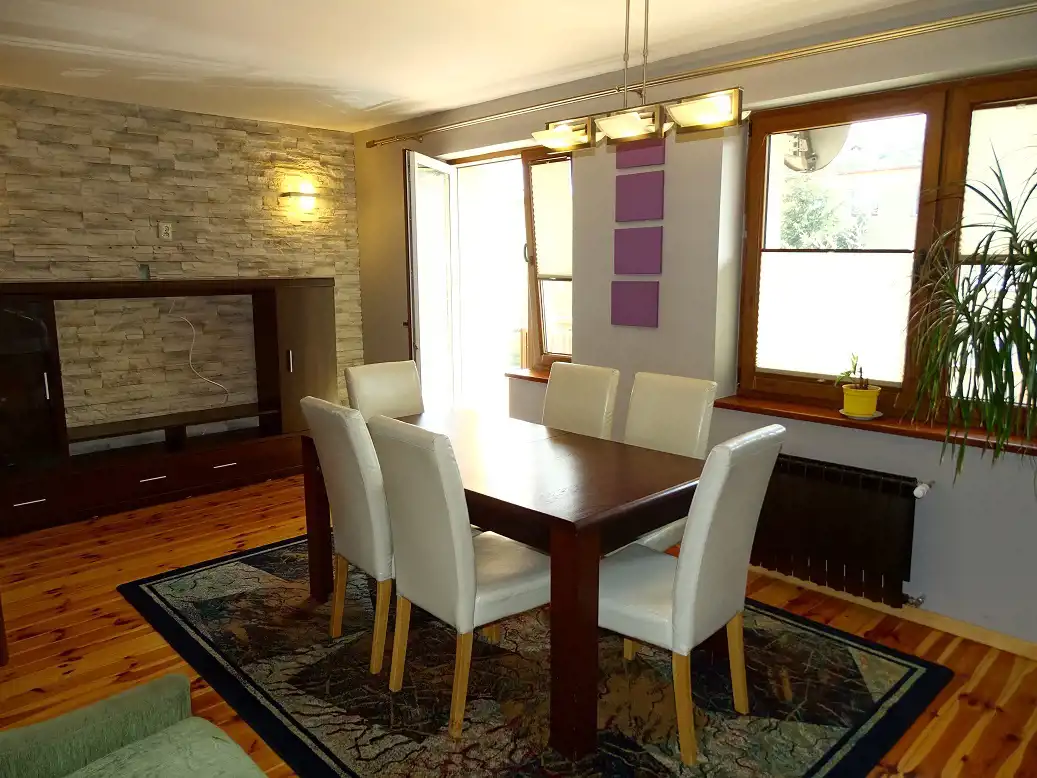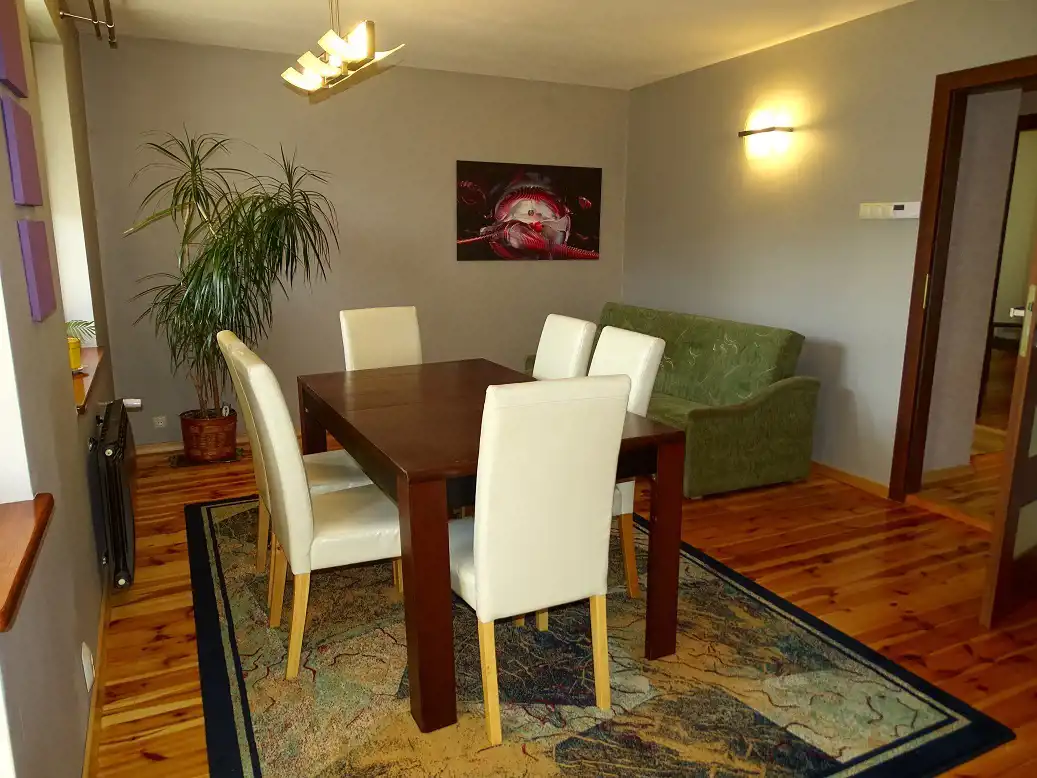 Mieszkanie jest kompletnie wyposażone w meble i sprzęt AGD (pralka, zmywarka, kuchenka, lodówka, talerz TV SAT). Istnieje możliwość podłączenia Internetu z sieci DIALOG oraz dwóch telewizorów do odrębnych konwertorów.