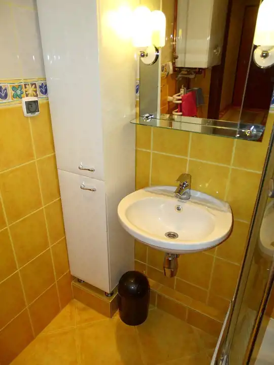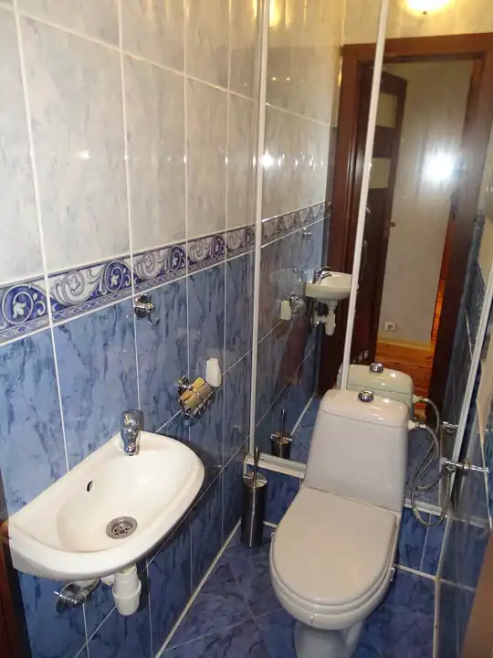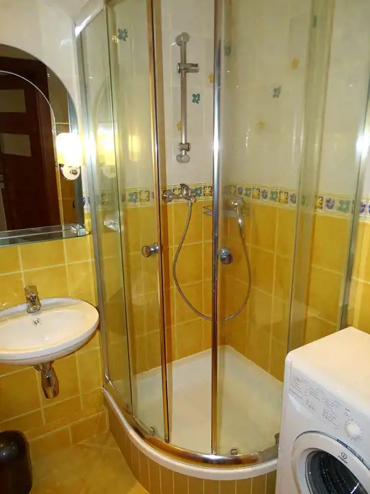 Odrębna łazienka z kabiną prysznicową oraz odrębna toaleta.