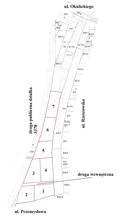 - ukształtowanie: działki w kształtach zbliżonych do prostokątów, wymiary działki minimum 17m szerokości