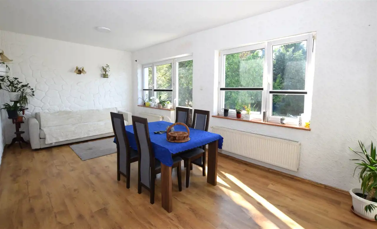 Dodatkowym atutem jest budynek gospodarczy zaadaptowany na cele mieszkaniowe, który doskonale sprawdzi się jako przestrzeń dla gości, biuro lub niezależne studio.