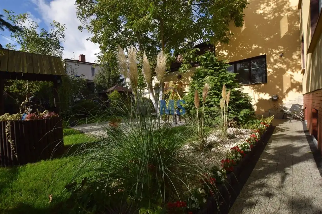Łączna powierzchnia użytkowa domu to 529m2, na którą składa się część mieszkalna (parter, piętro, poddasze – 303,65m2), część magazynowo-warsztatowa (109,59m2) oraz część piwniczna (115,54m2). Posesja ogrodzona z pięknym, kameralnym ogrodem, w którym z pewnością spędzimy miło czas na rodzinnym biesiadowaniu, opalaniu lub zwykłym relaksie w promieniach słońca.