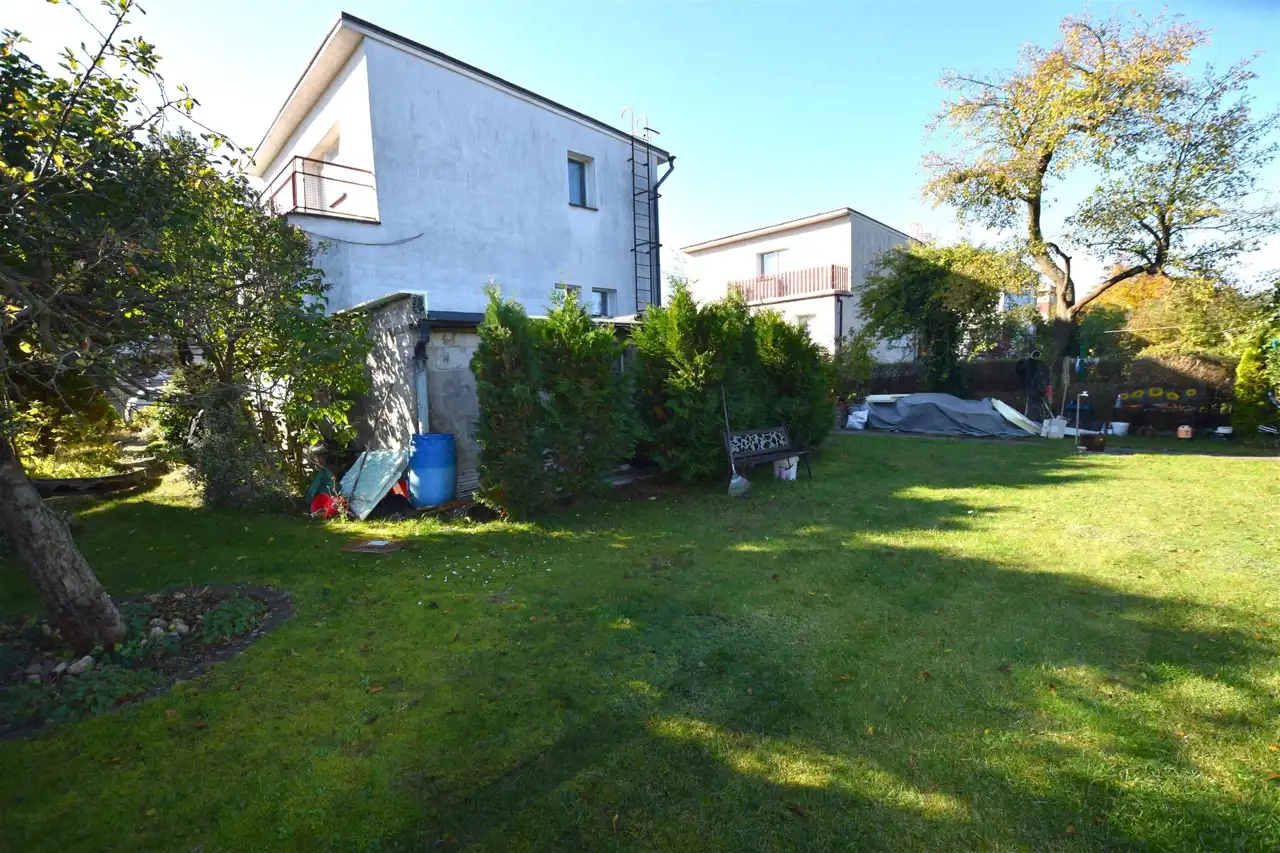 Dwukondygnacyjny, wolnostojący dom jednorodzinny usytuowany w spokojnej okolicy domów jednorodzinnych z dala od miejskiego zgiełku.