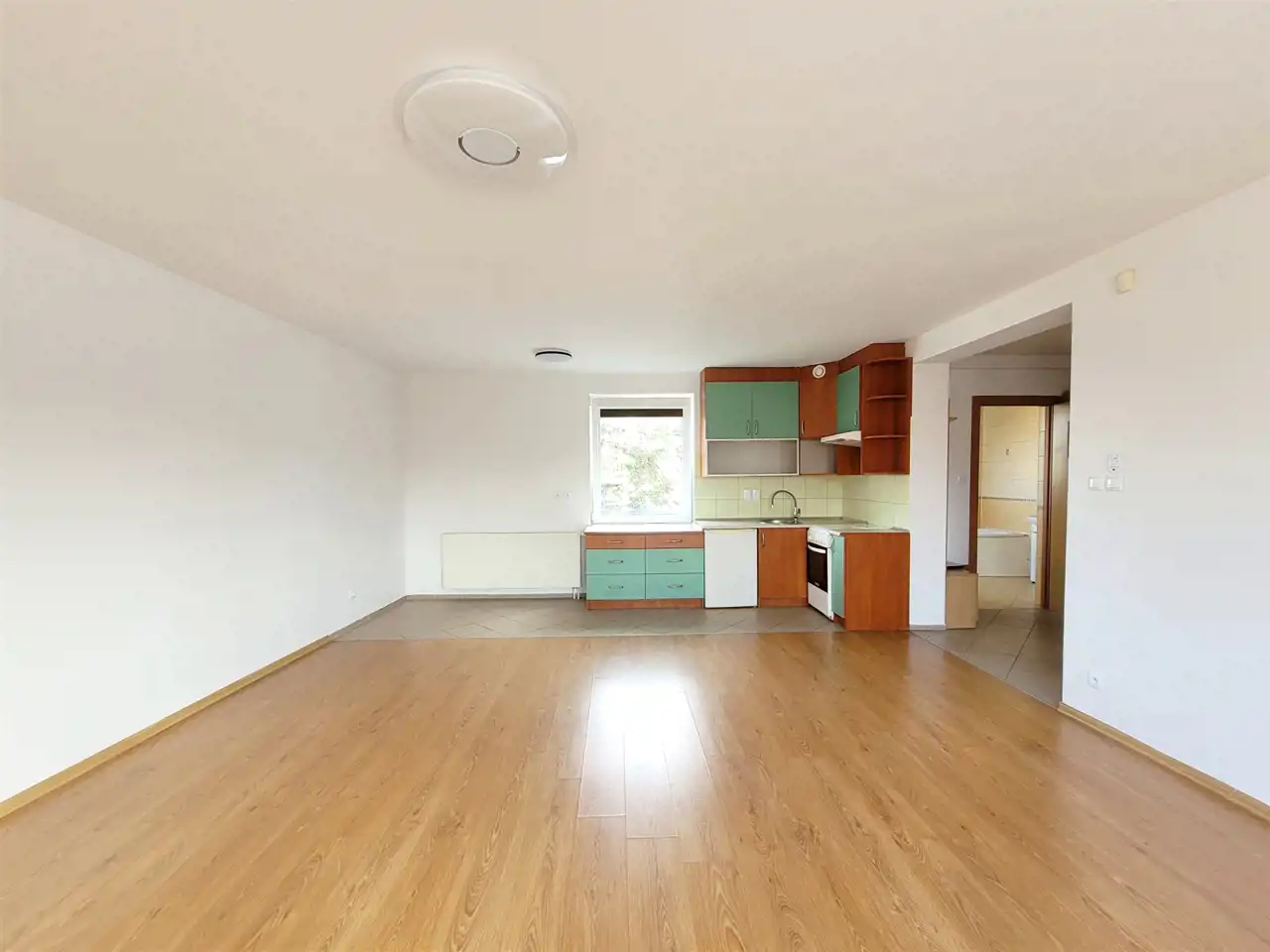 - przestronny salon z aneksem kuchennym,