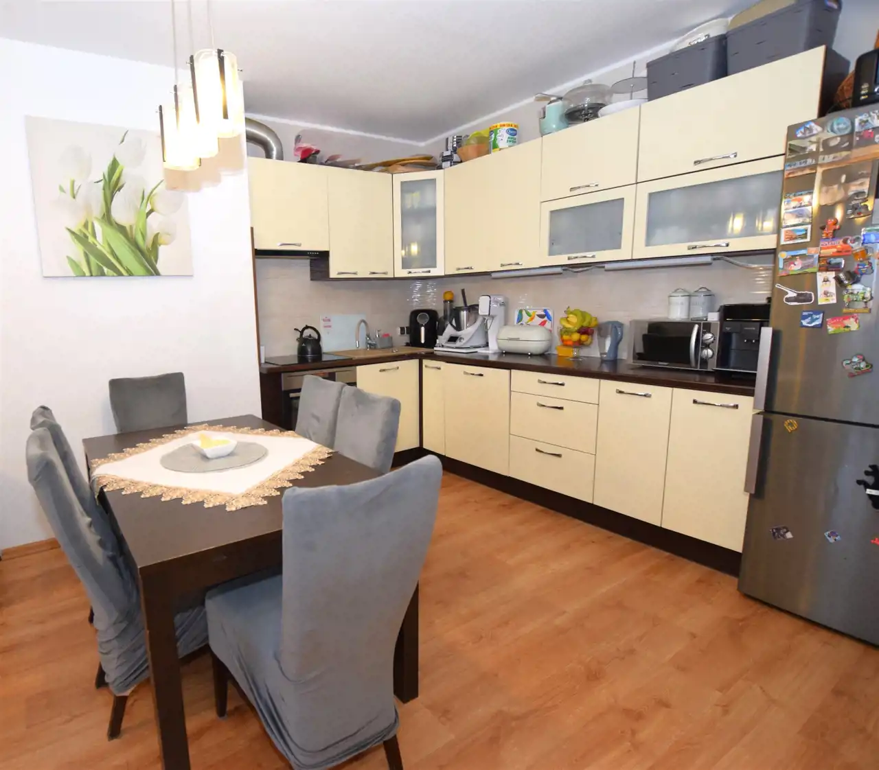 •Pokój z aneksem kuchennym: 24,10m² – przestronna i dobrze doświetlona przestrzeń do codziennego życia i relaksu, z wyjściem na słoneczny balkon, z którego rozprzestrzenia się ładny widok na panoramę osiedla, aneks kuchenny - wyposażony w zabudowę kuchenną według indywidualnego projektu, wyposażony w sprzęt AGD;