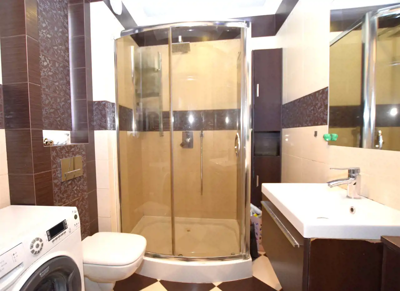 • Łazienka: 3,80m² – z wygodnym prysznicem, umywalką, WC oraz pralką;