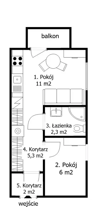 - Charakterystyka mieszkania 30 m2, 2 pokoje
