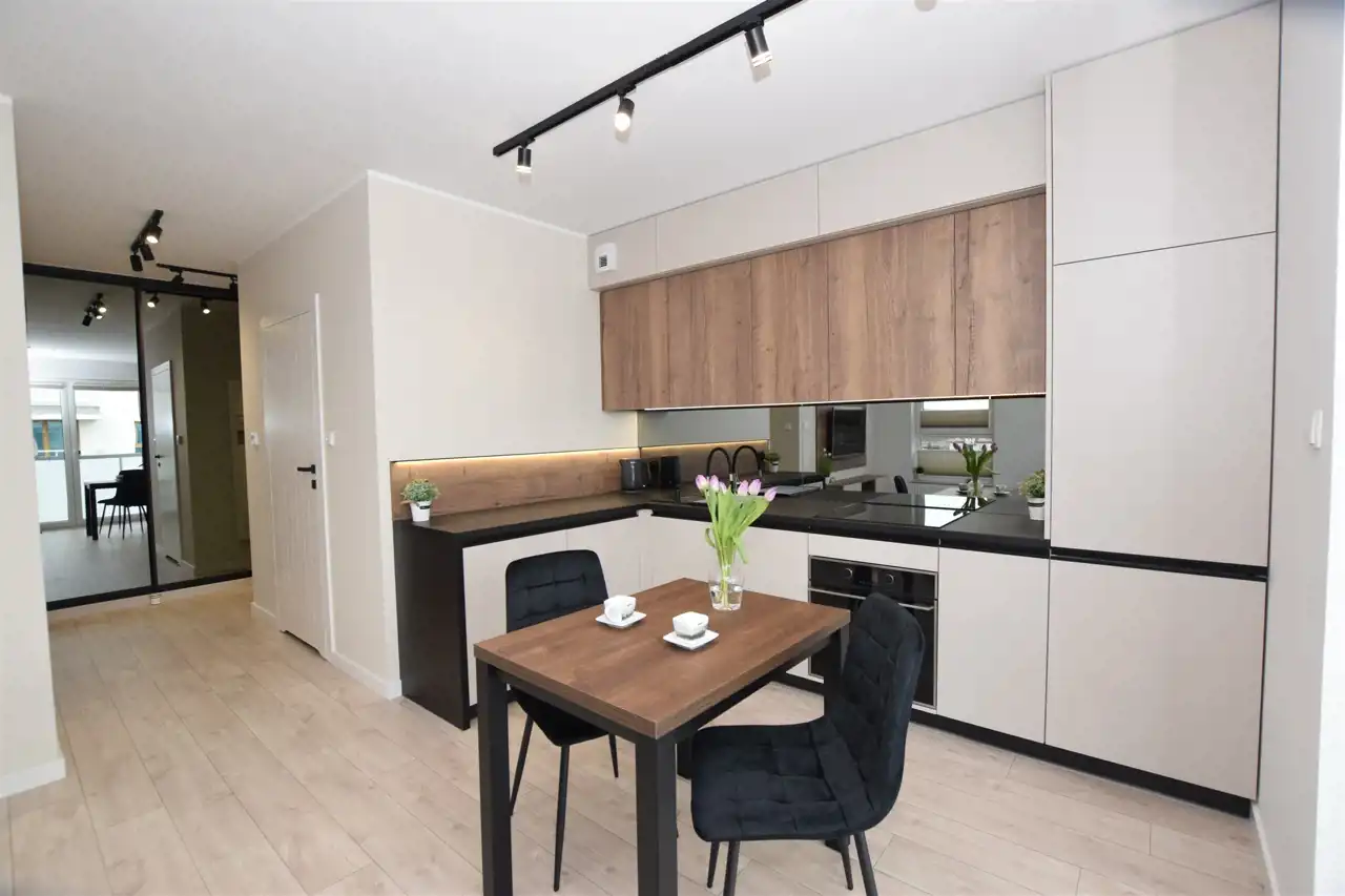 Mieszkanie jest świeżo wykończone, zaaranżowane zostało z dbałością o szczegóły, tak by zapewnić komfort i funkcjonalność.