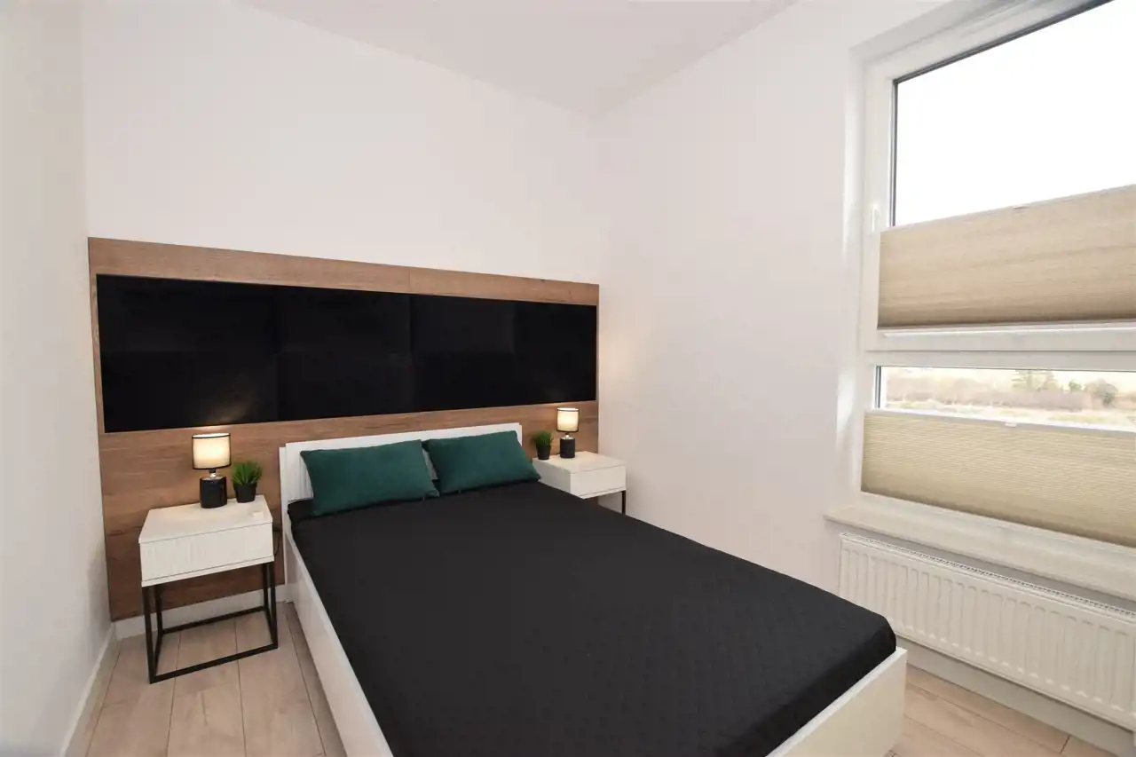 Do dyspozycji Najemcy pozostaje również dodatkowy pokój, idealny na sypialnię. Pokój ten wyposażony jest w duże łóżko z szafkami nocnymi i komodę.