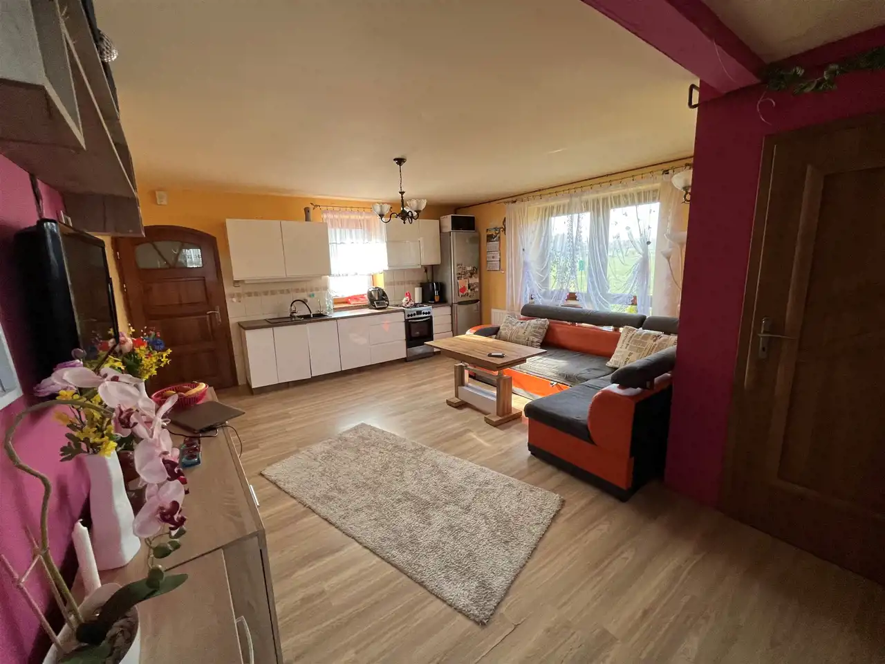 Dodatkowo na posesji drewniana stodoła o powierzchni około 100m2 oraz budynek gospodarczy z garażem o powierzchni około 50m2,