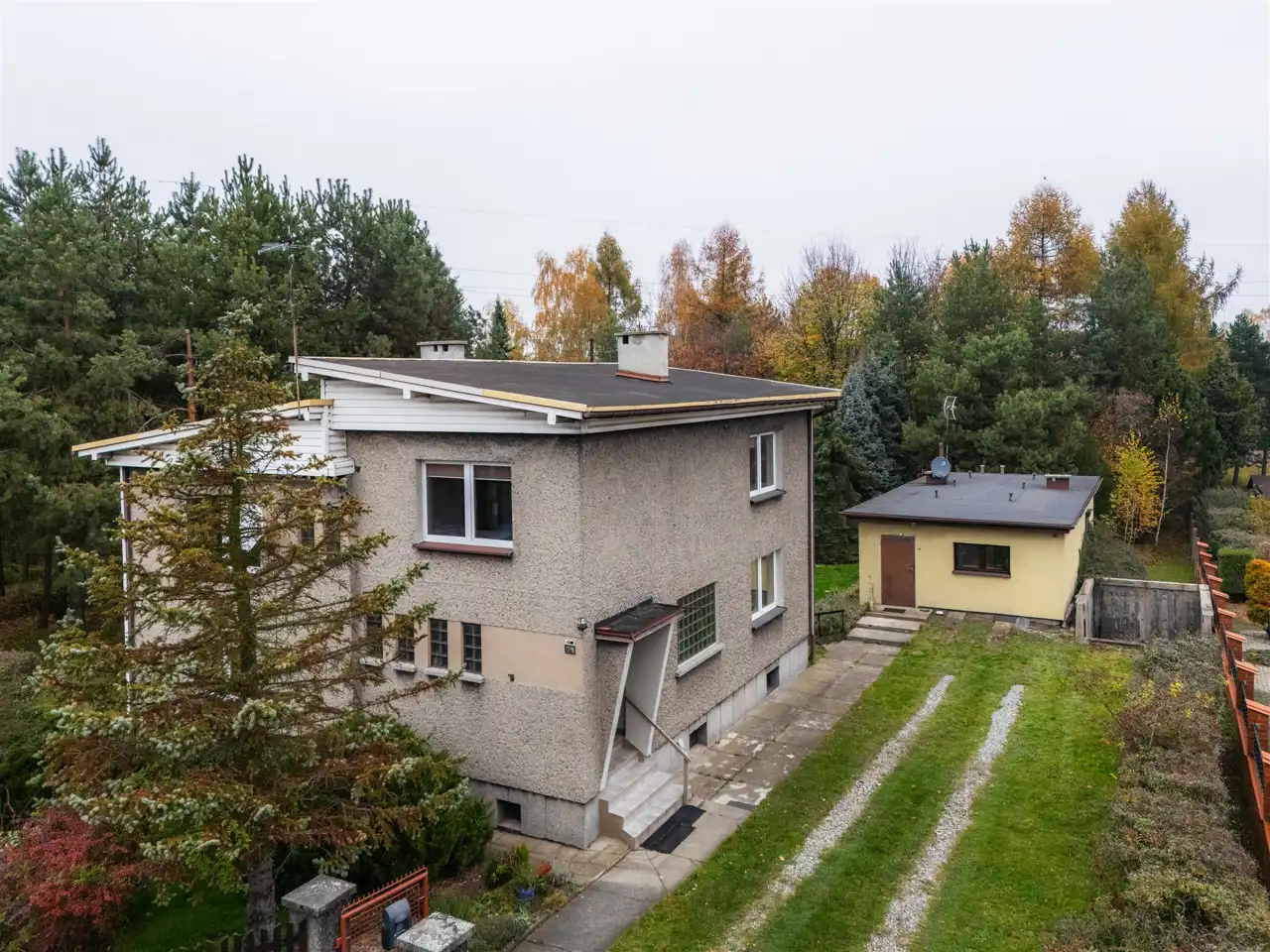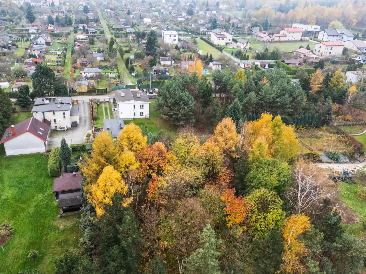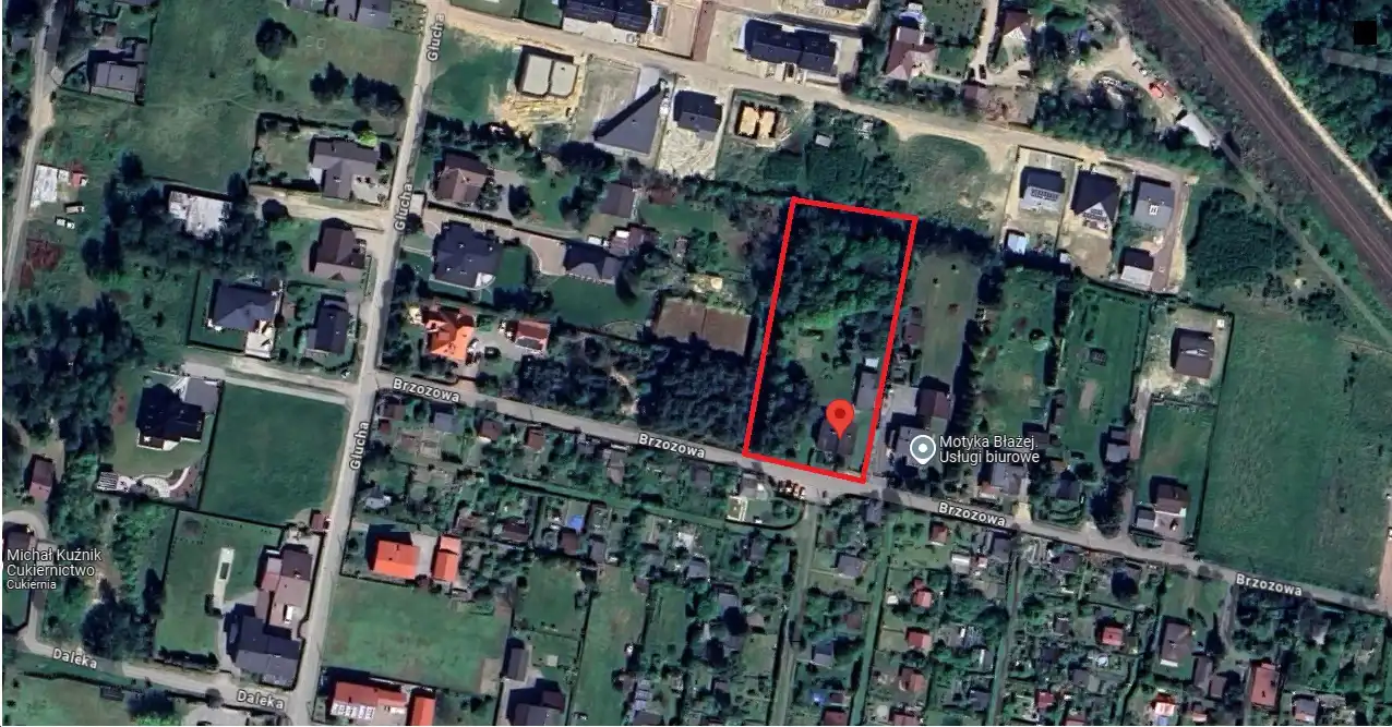 Dom o powierzchni użytkowej 160m2 usytuowany na działce o powierzchni 3626m2. Ogród i las do przekształcenia w stylowy park lub przydomowe arboretum. Las mieszany, około 40 gatunków drzew i krzewów. Okolica spokojna, czysta i cicha, żadnej uciążliwej działalności gospodarczej. Naprzeciw działki obszar ogródków działkowych ciągnący się między ulicami Brzozową, Głuchą i Raciborską. Sąsiednie działki zabudowane domami jednorodzinnymi z ogrodami. Dominującym elementem otoczenia jest zieleń.