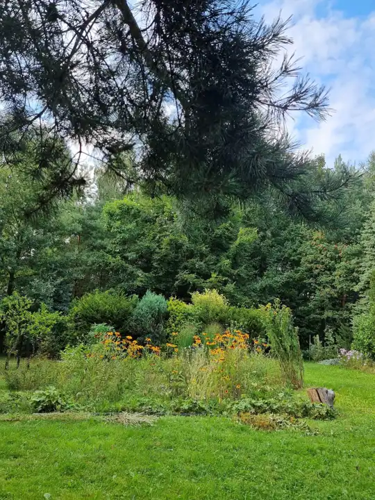 - Las na połowie działki, około 40 gatunków drzew i krzewów, między innymi sosny, jodły, świerki, modrzewie, cisy, dęby, jarzębiny, klony, jesiony i brzozy