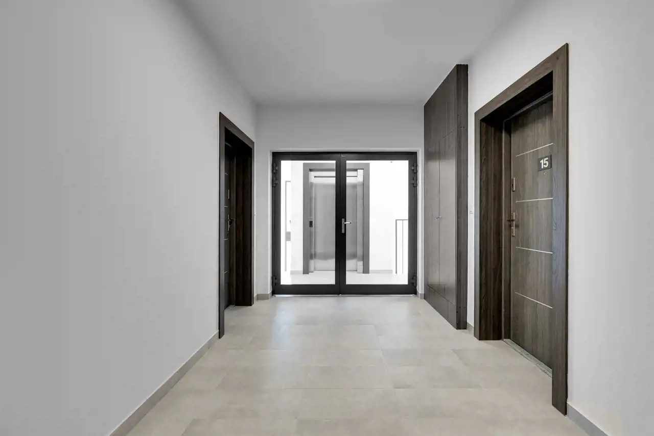 To kameralny, nowoczesny budynek z windą oraz podziemną halą garażową, położony na ogrodzonym terenie, zapewniającym mieszkańcom komfort i poczucie prywatności.