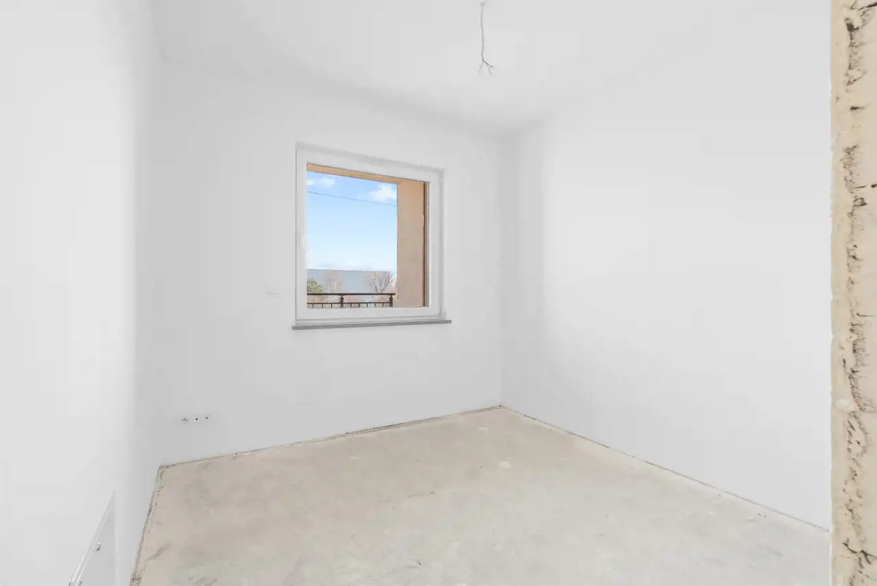 Duże przeszklenia sprawiają, że wnętrze jest jasne i dobrze doświetlone, a funkcjonalny układ pomieszczeń daje szerokie możliwości aranżacyjne. Dodatkowym atutem są elektryczne zewnętrzne rolety okienne, które zwiększają komfort użytkowania, oraz zapewniają prywatność.