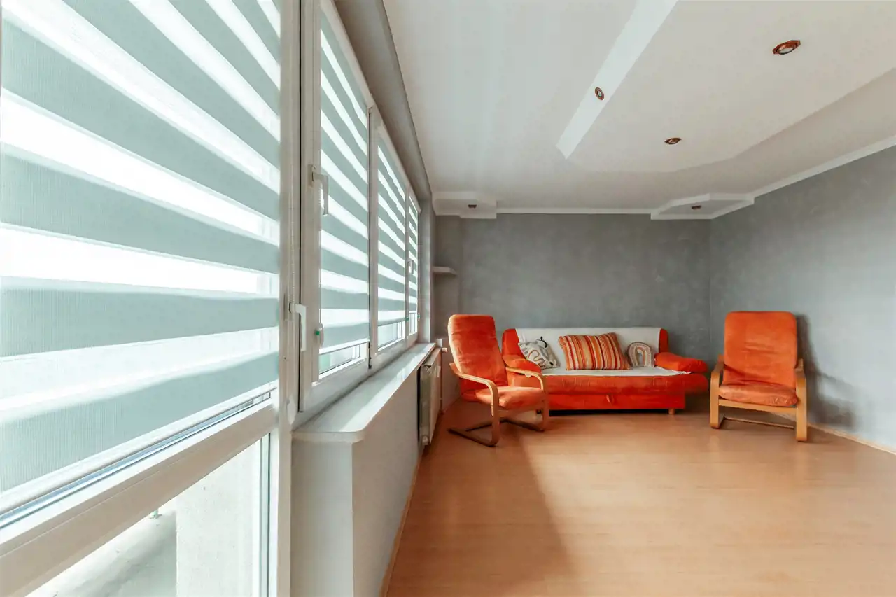 duży, ustawny salon z wyjściem na balkon,