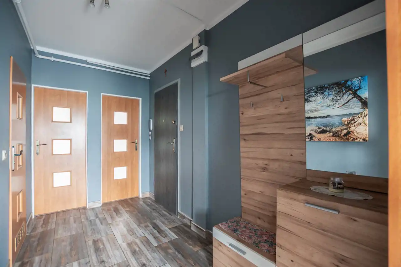 Świetna lokalizacja – w pobliżu sklepy, przystanek komunikacji miejskiej, szybki dojazd do centrum Rybnika. Budynek z windą i czystą, zadbaną klatką schodową.