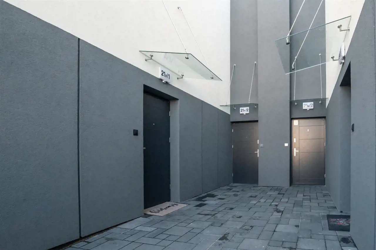 Do mieszkania przynależy ogródek 78 m² z domkiem na narzędzia oraz dwa miejsca postojowe. Całość została wykończona z najwyższą dbałością o detale, zgodnie z aktualnymi trendami wnętrzarskimi.
