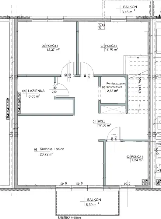 Apartament z rozmachem - pierwsze piętro, 83m², 2 balkony, prywatność i przestrzeń.