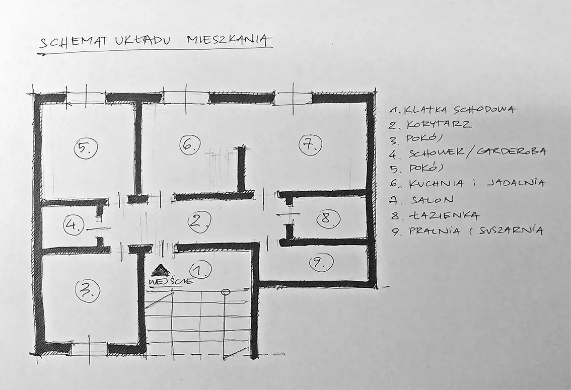 - Rozkład mieszkania 2p piętro