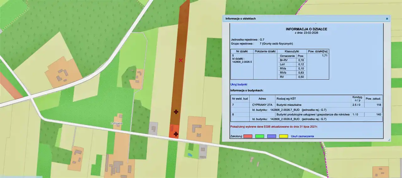 Biuro NIERUCHOMOŚCI24 przedstawia Państwu ofertę sprzedaży gospodarstwa rolnego wraz z budynkami gospodarczymi położonego w miejscowości Cypriany w gminie Rybno. Działka 1,7100 ha.