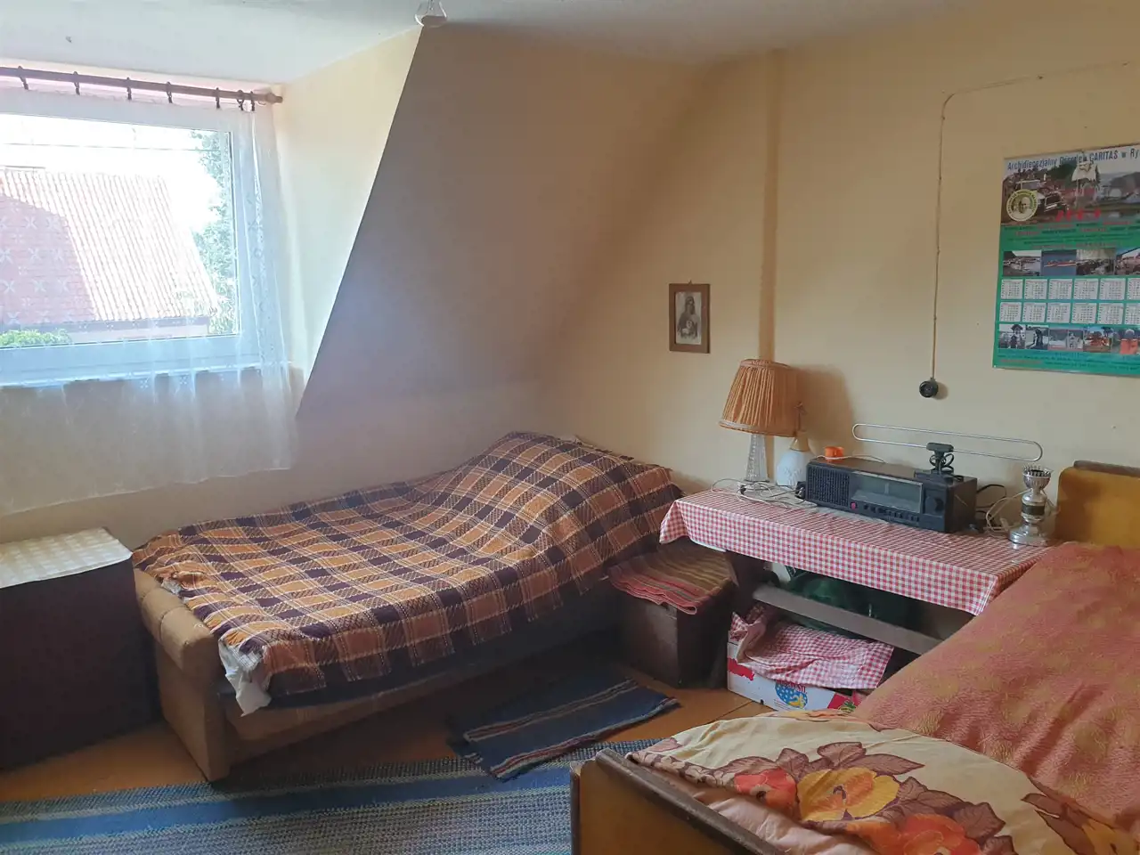 Mieszkanie dwupokojowe, dwupoziomowe stanowiące środkowy segment w budynku wielorodzinnym położone w miejscowości Rejsyty k. Rychlik gm. Rychliki powiat elbląski. Lokal składa się z następujących pomieszczeń: parter: pokój, kuchnia, łazienka, wc, korytarz; mieszkalne poddasze - pokój. Powierzchnia ogólna lokalu wynosi 51,40m2 ,zaś powierzchnia użytkowa 35,40m2. Podłogi w pokojach deski malowane, w kuchni, korytarzu na deskach - gumoleon. Ściany malowane. Schody drewniane. Okna pcv dwuszybowe. Drzwi wewnętrzne płycinowe przeszklone i drewniane pełne. Cały segment jest podpiwniczony. Instalacja elektryczna, wodociągowa i kanalizacyjna. Ogrzewanie piecowe. Ciepła woda użytkowa z bojlera. Dach świeżo pokryty blachodachówką. Istnieje możliwość adaptacji większej części poddasza na cele mieszkalne. Lokal do remontu. Wraz z lokalem zbywane są trzy działki położone vis-a-vis lokalu o łącznej powierzchni 0,0689 ha, w tym jedna zabudowana budynkiem gospodarczym oraz udziały w dwóch innych działkach o łącznej powierzchni 0,0195 ha. Atutem oferty jest duży ogród do zagospodarowania znajdujący się obok budynku mieszkalnego.