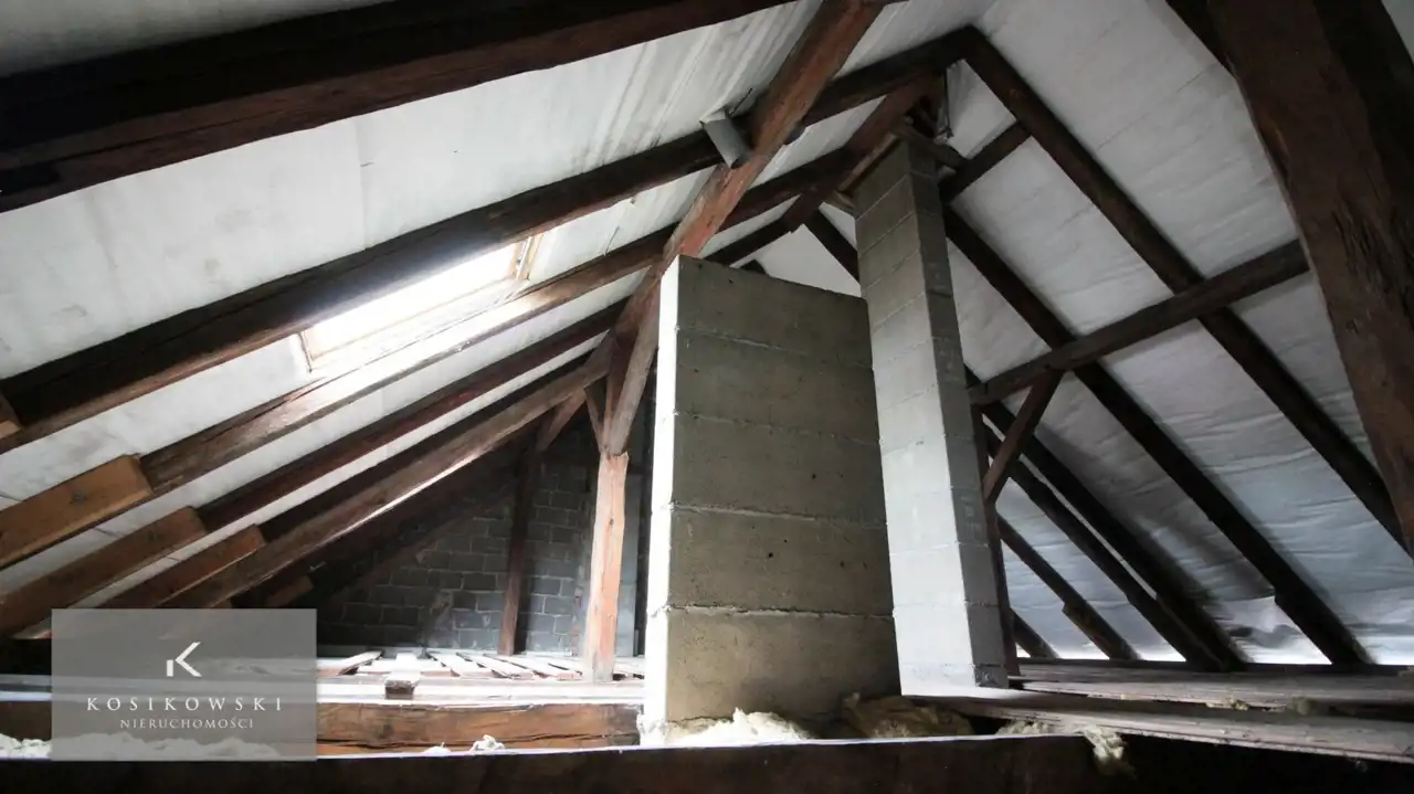 Nad częścią mieszkalną znajduję się jeszcze spory strych .