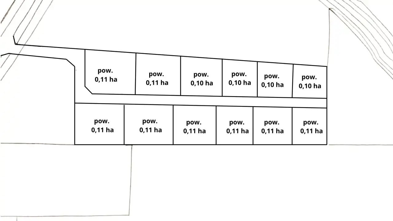 Działki są w trakcie podziału geodezyjnego – docelowo powstaną działki o powierzchni ok. 1000 m²- 1100 m². Pomiędzy działkami zaprojektowana została droga wewnętrzna, zapewniająca wygodny i bezpieczny dojazd do każdej z nieruchomości.