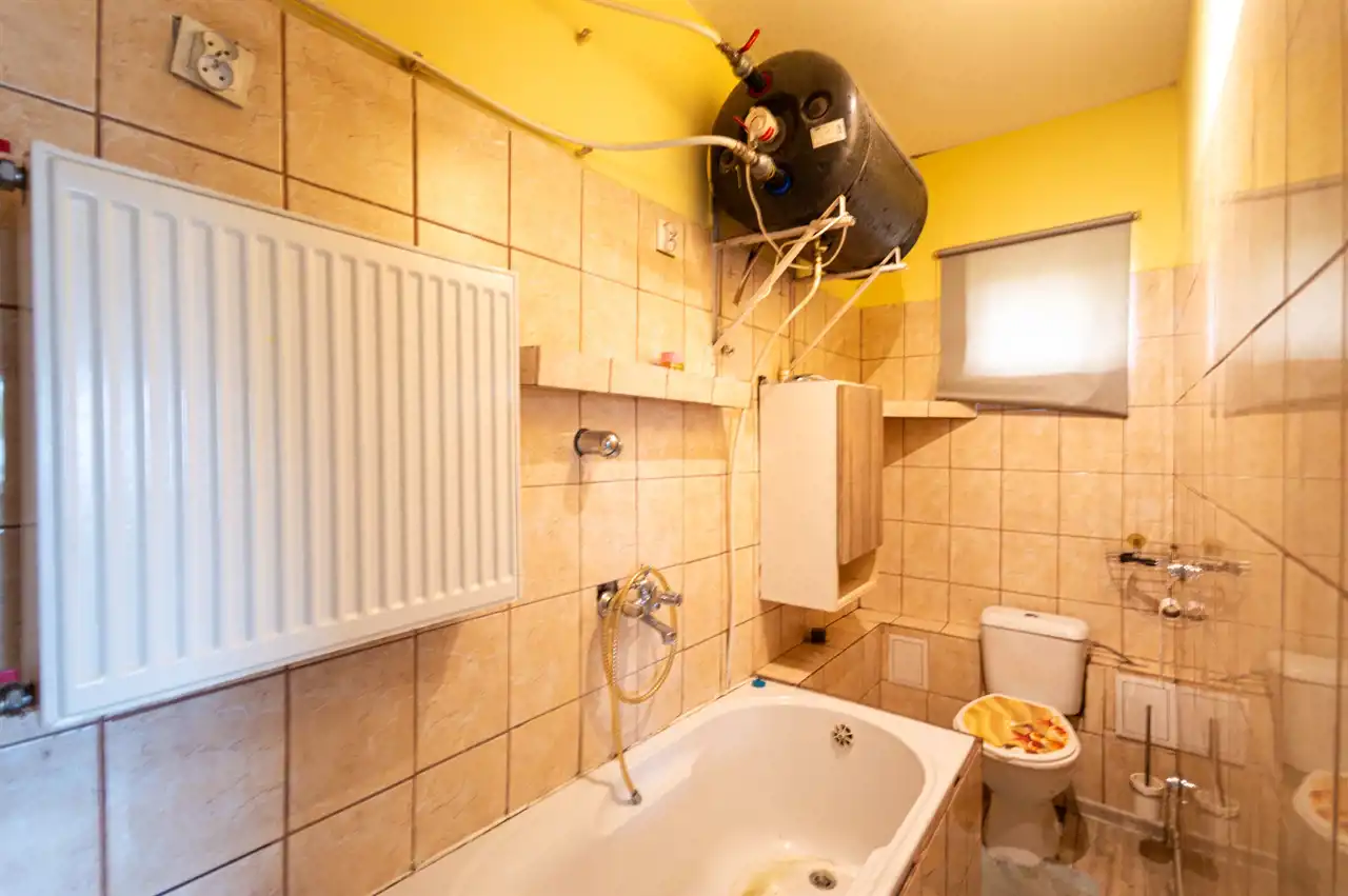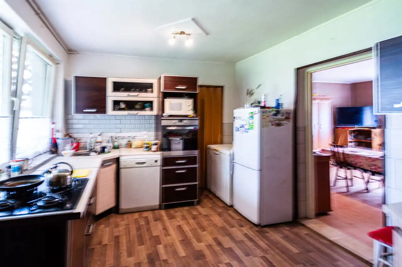 Pięć pokoi, trzy kuchnie, dwie łazienki, spiżarnia, skrytka, kotłownia z dwoma piecami.