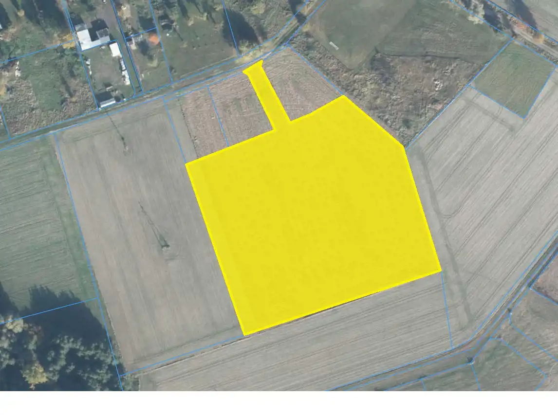 Działka z możliwością podziału na 9 mniejszych działek budowlanych (wstępny projekt podziału w galerii zdjęć).