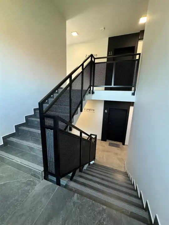 - Funkcjonalna i elegancka klatka schodowa – materiały najwyższej jakości podkreślające nowoczesny charakter wnętrza.