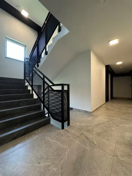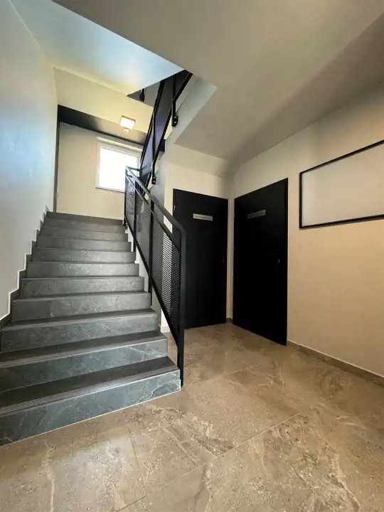 - Funkcjonalna i elegancka klatka schodowa – materiały najwyższej jakości podkreślające nowoczesny charakter wnętrza.